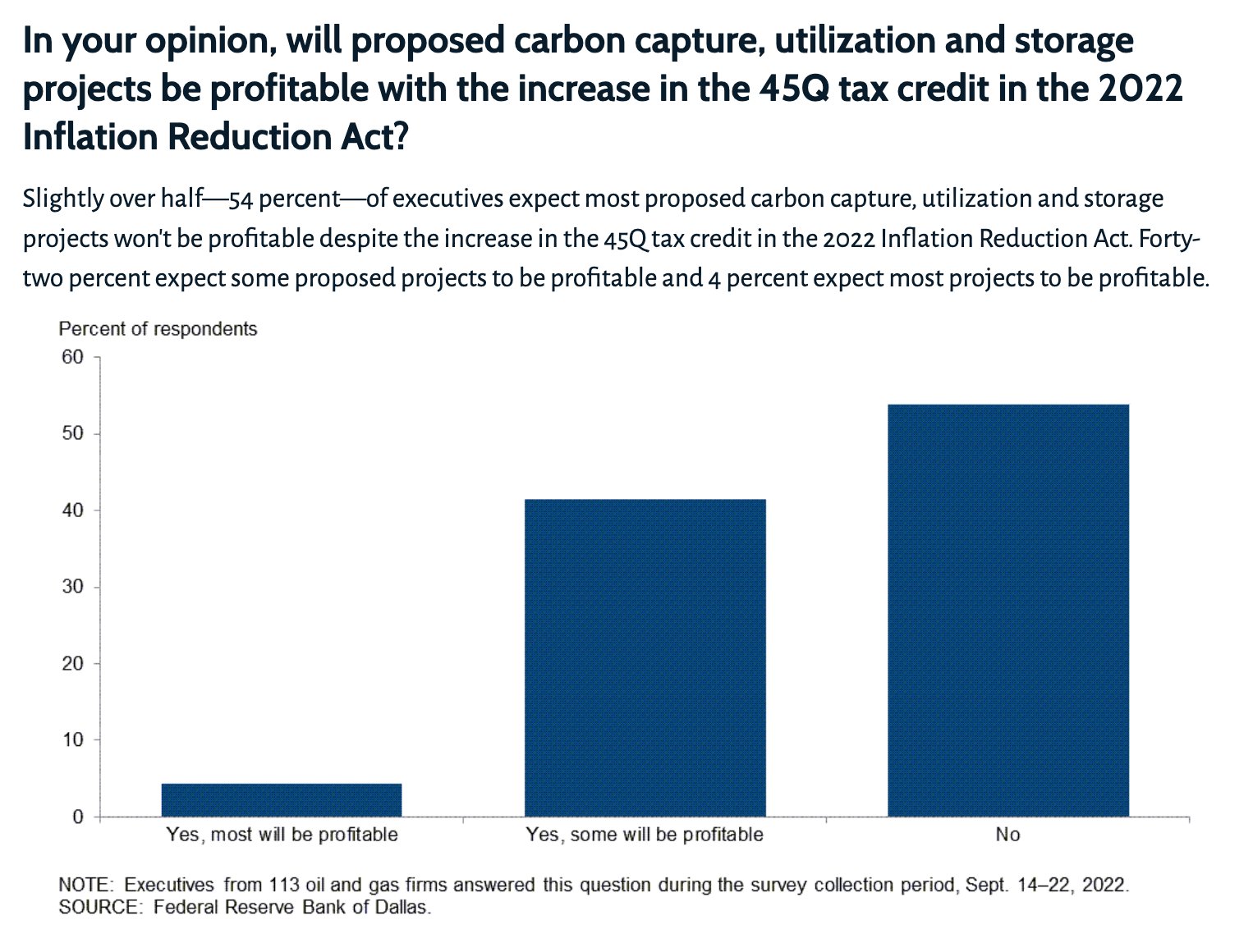 Kate Aronoff On Twitter More Than Half 54 Of Oil And Gas Executives Surveyed By The Dallas Fed Don T Expect Carbon Capture Utilization And Storage To Be Profitable Even With Expanded Ira